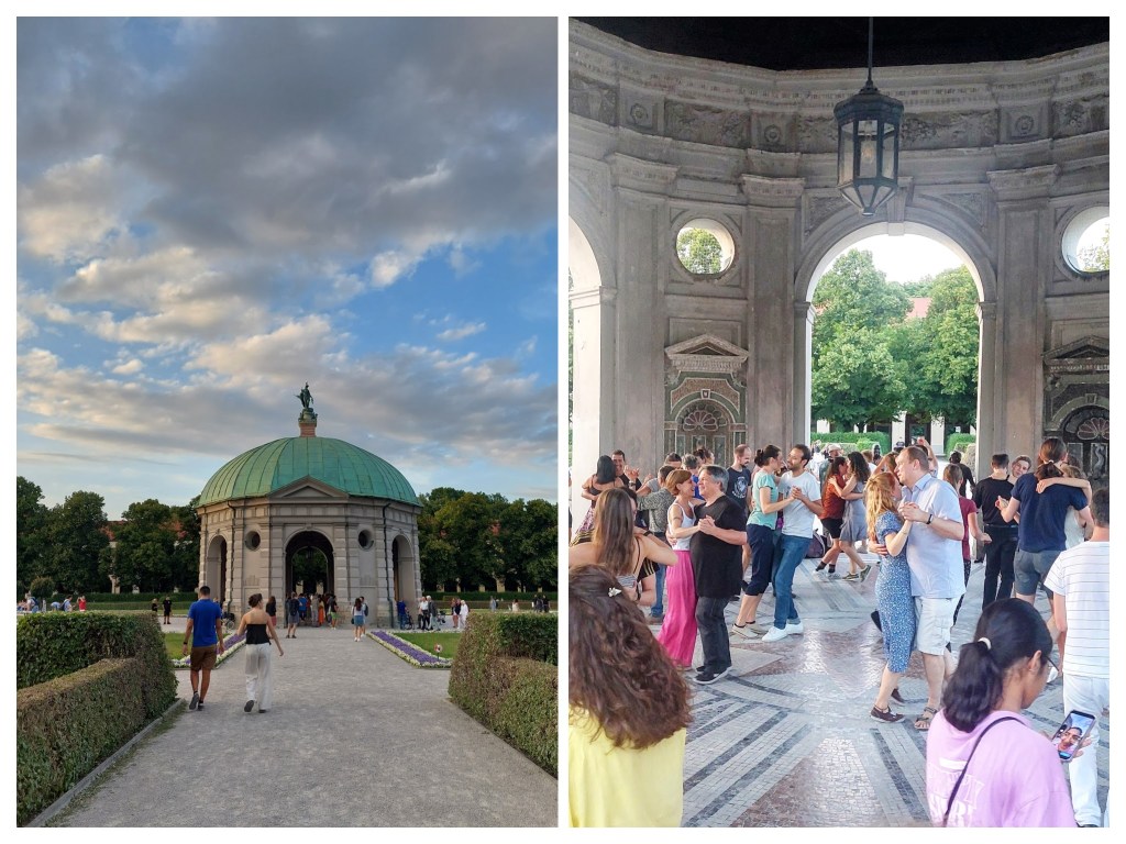 Budget exhausted by the beer hall, we headed off into the evening sunshine to see what fun was left to be had. We found ourselves near Das Residenz, a palace we had seen advertised as a tourist attraction and dismissed because of the entry fees. But as we rounded a corner we realised that the gardens are open to the public for free. We followed others through an archway and the beautiful formal palace gardens opened up around us. This was a lovely discovery in itself, but then we came across this…